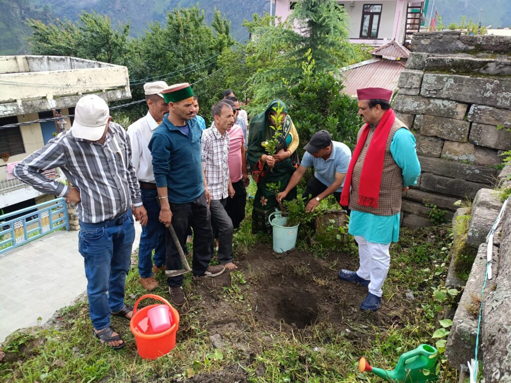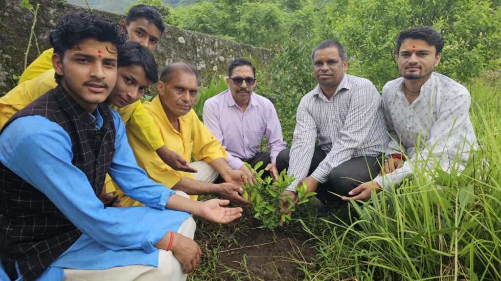 वृक्षारोपण वन तुलसी,बांज, बुरांश,देवदार,, अशोक, ब्रह्मकमल तथा सजावटी पौधों का रोपण किया गया।