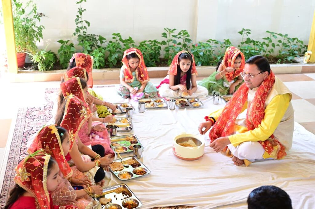देहरादून। रामनवमी के शुभ अवसर पर मुख्यमंत्री आवास में मुख्यमंत्री पुष्कर सिंह धामी ने कन्या पूजन कर देवी स्वरूपा बालिकाओं का सम्मान किया। इस दौरान उन्होंने पारंपरिक रीति-रिवाजों के अनुसार कन्याओं को भोजन कराया तथा उनका आशीर्वाद प्राप्त किया।