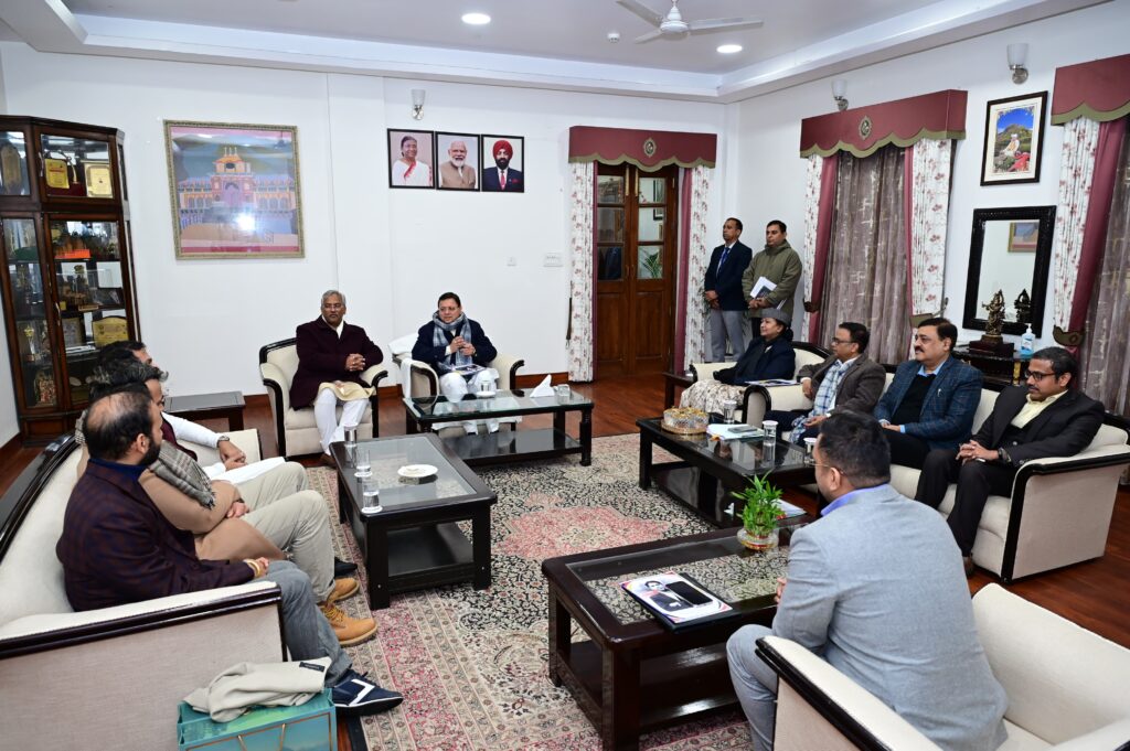 देहरादून। मुख्यमंत्री पुष्कर सिंह धामी से शनिवार को मुख्यमंत्री आवास पर फ्रैंकफर्ट (जर्मनी) के संसद सदस्य राहुल कुमार कंबोज ने भेंट की। इस अवसर पर हरिद्वार सांसद एवं पूर्व मुख्यमंत्री त्रिवेंद्र सिंह रावत भी उपस्थित थे।
