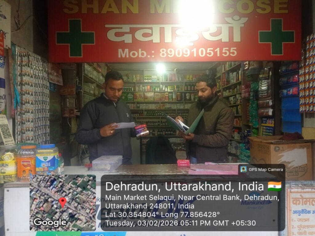 देहरादून। अपर आयुक्त, खाद्य सुरक्षा एवं औषधि प्रशासन, उत्तराखंड ताजबर सिंह जग्गी से प्राप्त निर्देशों के तहत “सेफ ड्रग, सेफ लाइफ अभियान” के अंतर्गत कोडीन युक्त कफ सिरप एवं अन्य psychotropic औषधीय की अवैध बिक्री की रोकथाम के लिए देहरादून में विशेष प्रवर्तन कार्यवाही की गई।