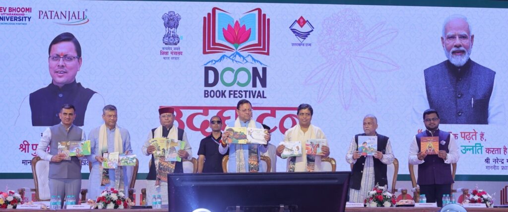 देहरादून। राजधानी के ऐतिहासिक परेड ग्राउंड में आज से नौ दिवसीय ‘दून पुस्तक महोत्सव’ का शानदार आगाज हो गया है। इस भव्य समारोह का उद्घाटन मुख्य अतिथि मुख्यमंत्री पुष्कर सिंह धामी द्वारा किया गया। इस अवसर पर उनके साथ प्रतिष्ठित विद्वान आचार्य बालकृष्ण, राष्ट्रीय पुस्तक न्यास, भारत के अध्यक्ष प्रोफेसर मिलिंद सुधाकर मराठे, उत्तराखंड सरकार में कैबिनेट मंत्री खजान दास, देहरादून के महापौर सौरभ थपलियाल, न्यास के निदेशक युवराज मलिक और देवभूमि विश्वविद्यालय के उपाध्यक्ष अमन बंसल सहित कई गणमान्य विभूतियाँ उपस्थित रहीं।