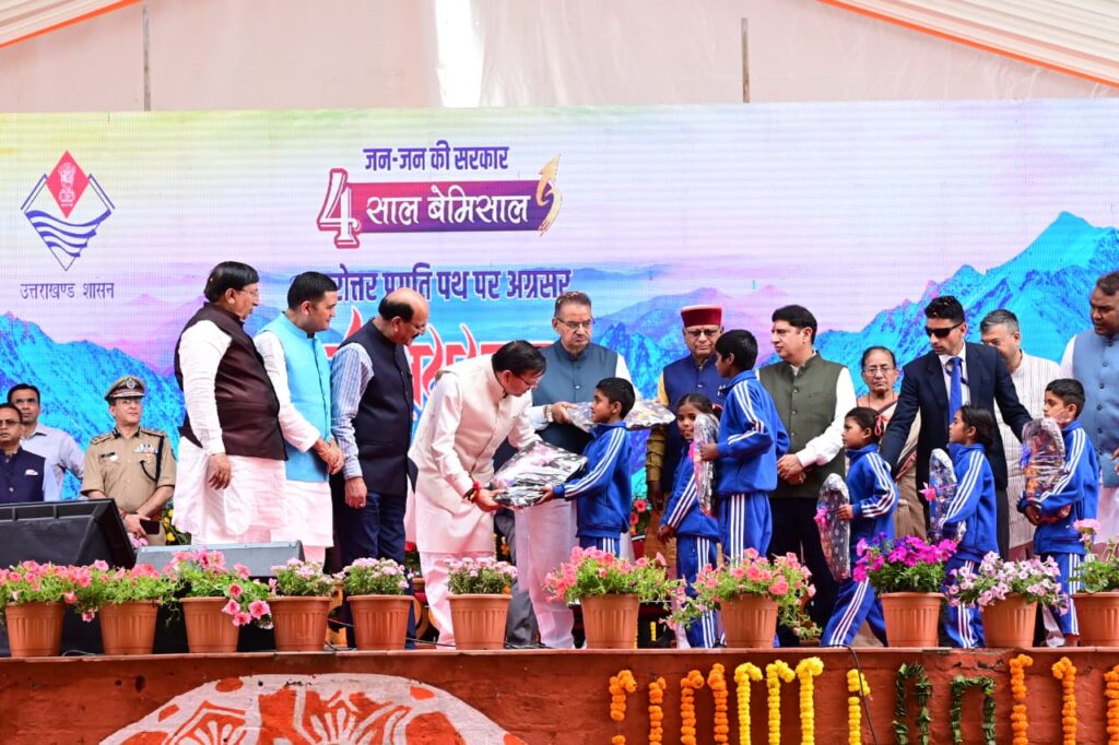 देहरादून। मुख्यमंत्री पुष्कर सिंह धामी ने सोमवार को सरकार के चार वर्ष पूरा होने पर परेड ग्राउंड में आयोजित 4 साल बेमिसाल कार्यक्रम को संबोधित किया। इस मौके पर उन्होने विभिन्न विकास परियोजनाओं का लोकार्पण एवं शिलान्यास भी किया।