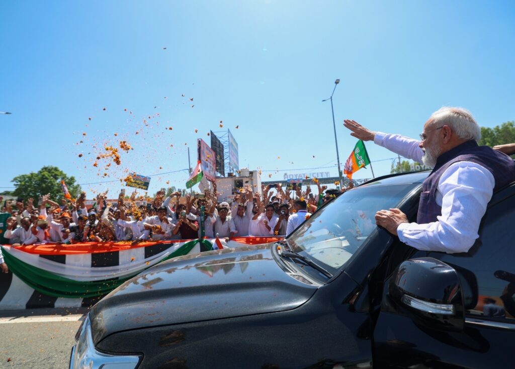 प्रधानमंत्री नरेंद्र मोदी ने भी हाथ जोड़कर और हाथ हिलाकर लोगों का अभिवादन स्वीकार किया। जनता के इस अपार प्रेम और समर्थन से वे बेहद प्रसन्न और उत्साहित दिखाई दिए।
