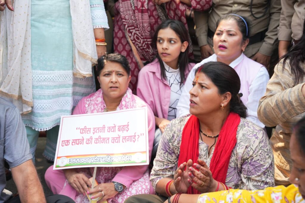 देहरादून। उत्तराखंड प्रदेश महिला कांग्रेस कमेटी की अध्यक्ष ज्योति रौतेला के नेतृत्व में बुधवार को सैकड़ों महिला कांग्रेस कार्यकर्ताओं ने प्रदेश में लगातार बढ़ रही स्कूल फीस और शिक्षा व्यवस्था में व्याप्त अनियमितताओं के विरोध में शिक्षा मंत्री धन सिंह रावत के आवास का घेराव कर जोरदार प्रदर्शन किया।